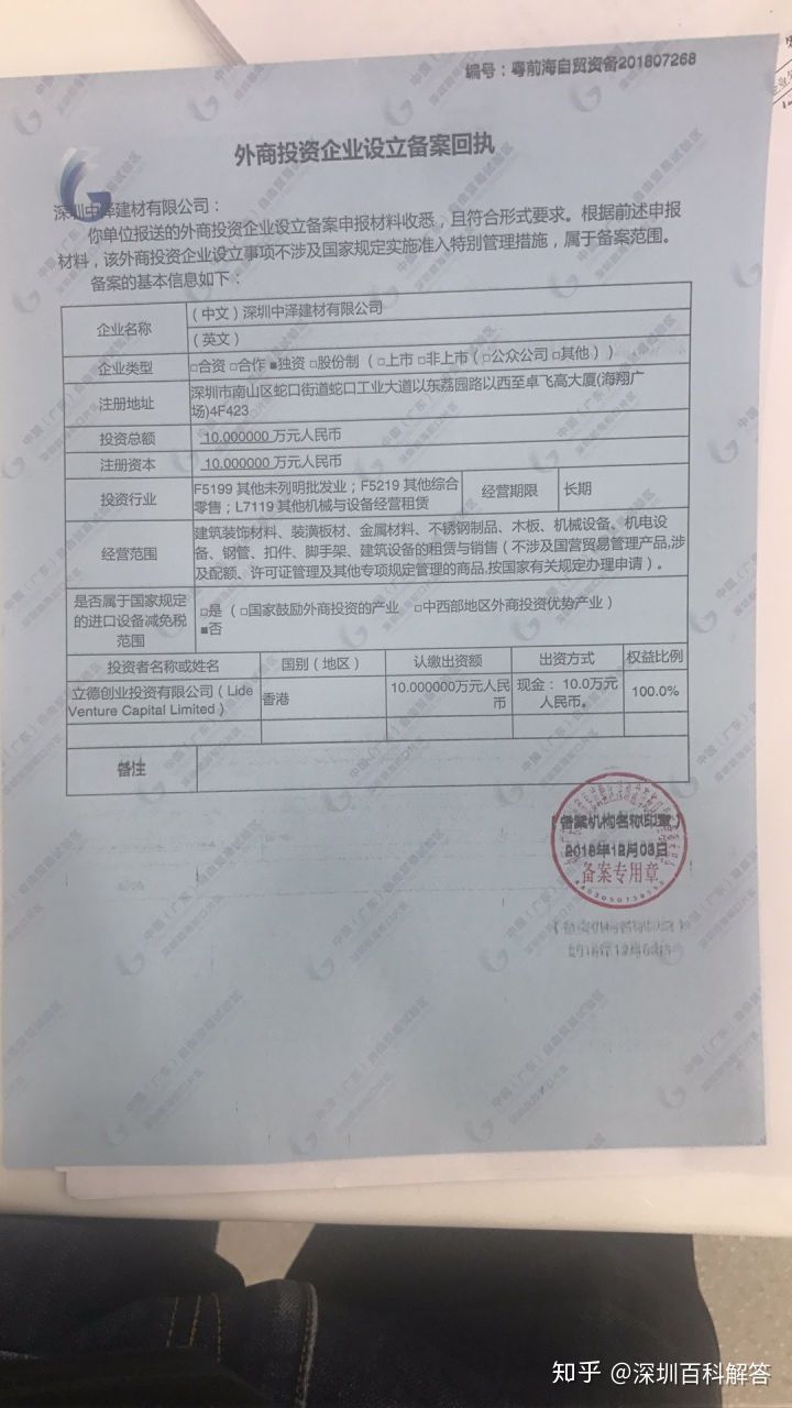 5、如果是外资企业,还需要进行外商备案。备案过了之后就会得到一个备案回执单。